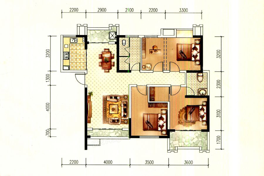 各个空间户型方正,后期空间利用率高;全明户型,各部分空间均有窗,可保证整体空间采光和通风,居住舒适度好;卫生间朝向卧室,产生的气味对卧室有影响。各个功能区的尺寸比例规范,布局合理,能很好地满足日常功能需求,整体空间开阔,采光充足,居住舒适度好;公摊高于15%且低于25%,符合住宅公摊正常范围。