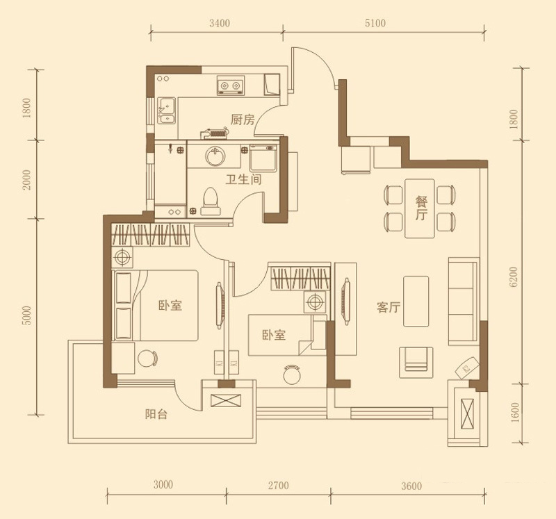 昊海·梧桐2室2厅1厨1卫 总价待定