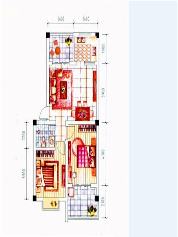 整体户型方正,活动区域开阔,居住舒适度高;全明户型,各部分空间均有窗,可保证整体空间采光和通风,居住舒适度好;入户门进厨房需要穿过客厅;。卫生间朝向卧室,产生的气味对卧室有影响。卧室厨卫等各个功能区的面积大小都比较合理,居住体验便利,整体舒适度高;