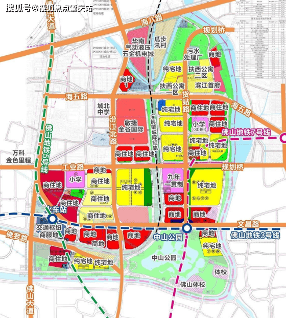 【地铁/高铁】广湛高铁(在建2025年建成)一站抵广州;地铁3号线(在建2024年建成)中山公园站直线距离800米,3站广佛线,5站季华路/千灯湖。片区还规划有5号线与7号线,分别与3号线在火车站和中山公园站换乘;