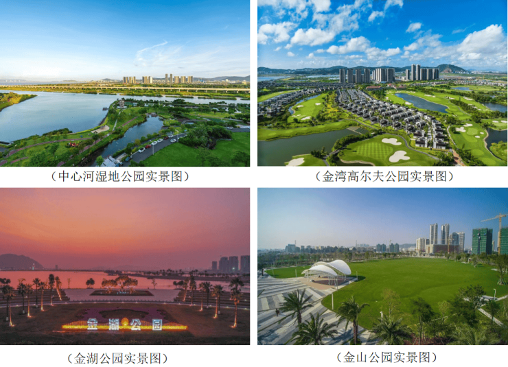 •金湖公园:以生态水景为核心,打造“一环两堤三湖”、涵盖观光游赏、康体健身、生态科普和养生休憩等综合性城市公园;