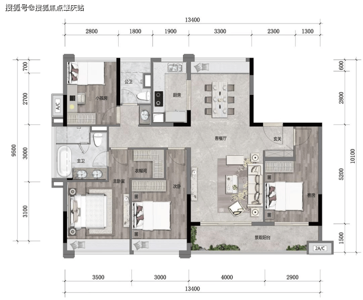 【112㎡四房两厅两卫】罕见112㎡户型四房产品,约3.7米开间,3.4米主卧开间
