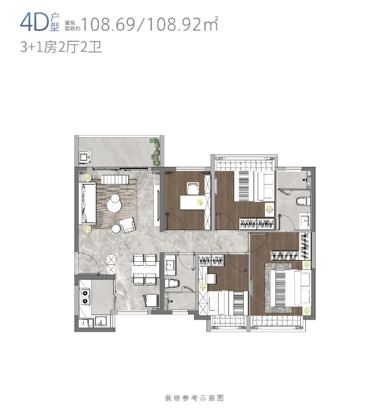 4D户型108.69/108.92㎡四房两厅两卫