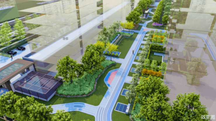 项目园区呈线性布局,涵盖多功能草坪区、会客聚会区、乐享休闲区三大区域,融合环形健康跑道、静思品茶区、下沉式会客活动区等功能区,打造绿意浓阴、鲜氧环绕的社区生活