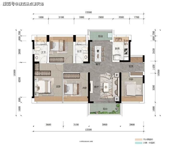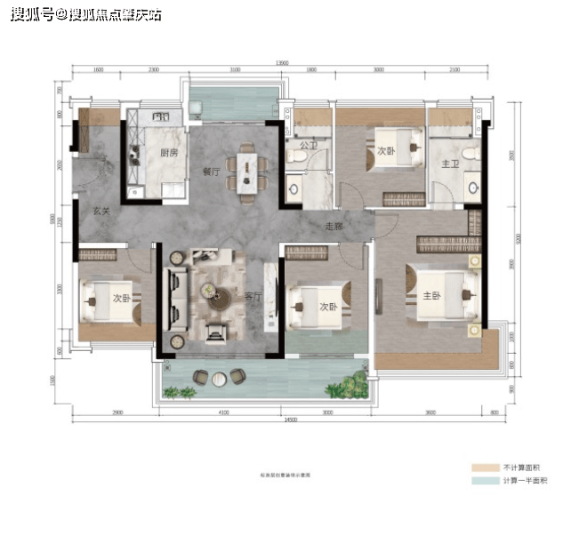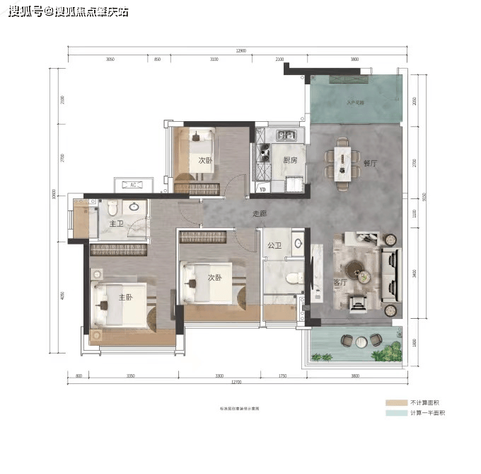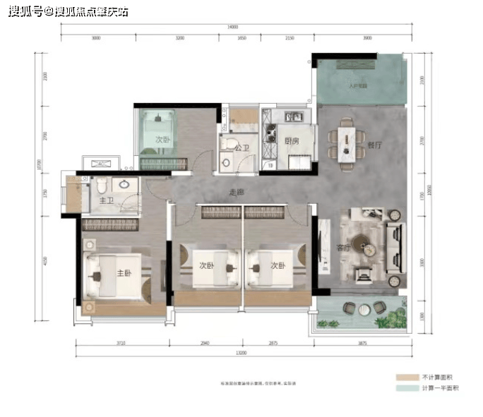 ②客厅与次卧阳台互通,餐厅带景观阳台,南北对流