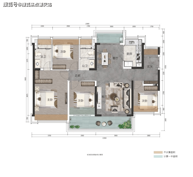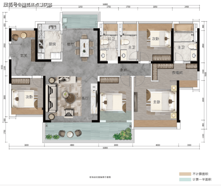 ④私密主卧套房3.8米开间,可根据需求设置衣帽间