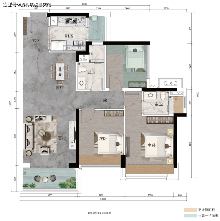 ②设置入户玄关,次卧与客厅阳台互通,延展更大观景空间