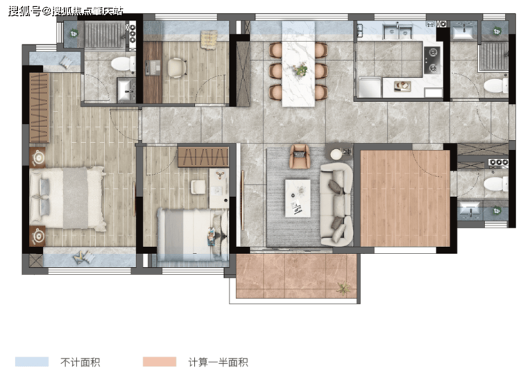 •主卧带0.5个卫生间,既实用又不多占面积