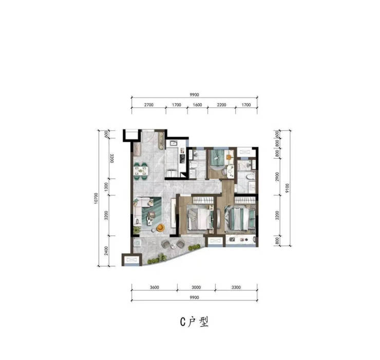 [C户型约95㎡三室两厅两卫]