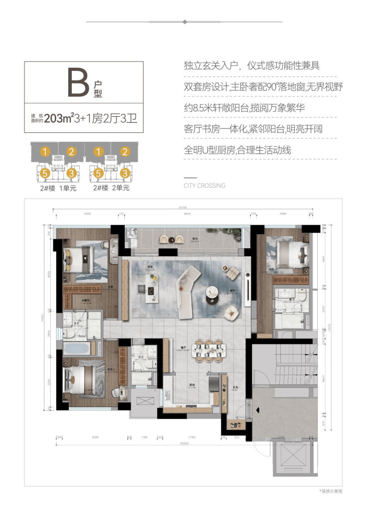 交通配套:位于城市主干道附近,公交线路众多,交通网络发达。且临近海口湾,距离秀英港较近,水上交通也较为便利。此外,项目还处于双地铁上盖位置,出行十分便捷。