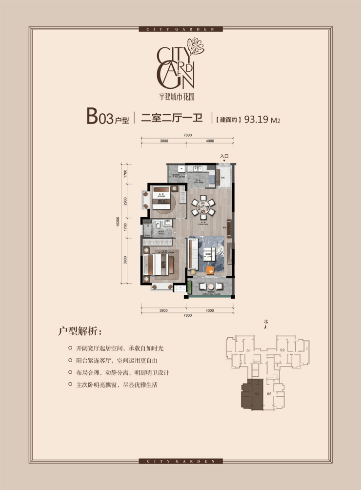 电梯户数:2梯4户(南北通透板塔楼设计,通风性好)