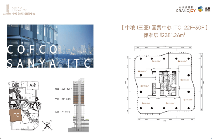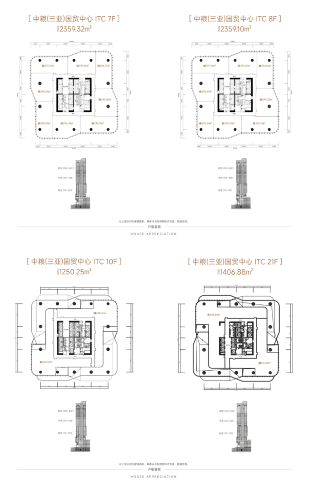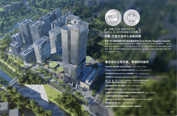🌟中粮(三亚)国贸中心 ITC(207米地标写字楼)共43层,总建面约7.4万㎡,约12米建筑层高大堂,标准层高约4.3米;