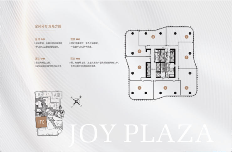①低区为7—19F,标准层面积约2300㎡,9F为避难层;
