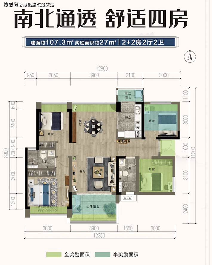 整个规划坐北朝南,以最大程度展开住宅面宽,收纳公园景观入户,整体设计力求户户朝景、南北对流、全明通透,超高奖励面积。