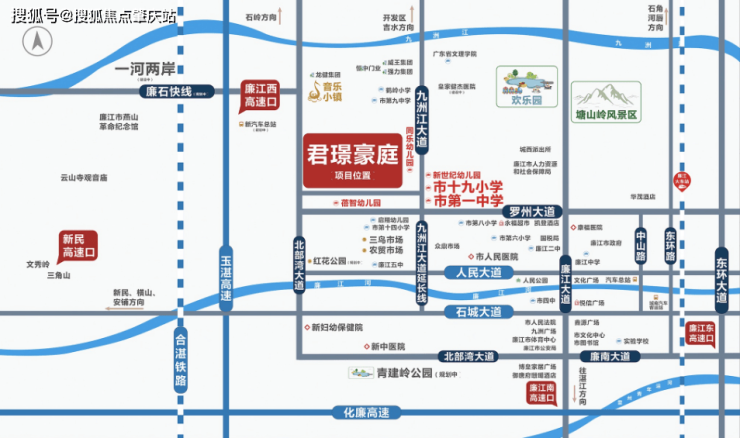 项目位于北部湾大道,罗洲大道交通主干道旁,是廉江最重要的交通枢纽,去到廉江西高速路口就3-5分钟;项目建面约20万平方米,在廉江属于中大型社区规模,底层商业配套,大型园林规划应有尽有。