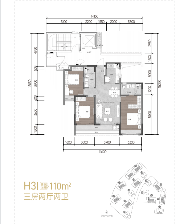 •142㎡:四房两厅两卫 14#送阳台11㎡
