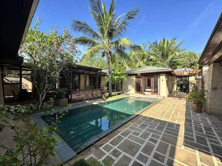 庭院西部双卧室对称而立,配套卫生间与室外淋浴间,尽赏超大泳池景观,起居室与餐厅、家庭室浑然一体,共赏中心庭院水木清华,四季芳菲愉悦身心。设保姆间、洗衣间、卫生间与中式厨房,主仆区域分明,大家风范可见一斑。