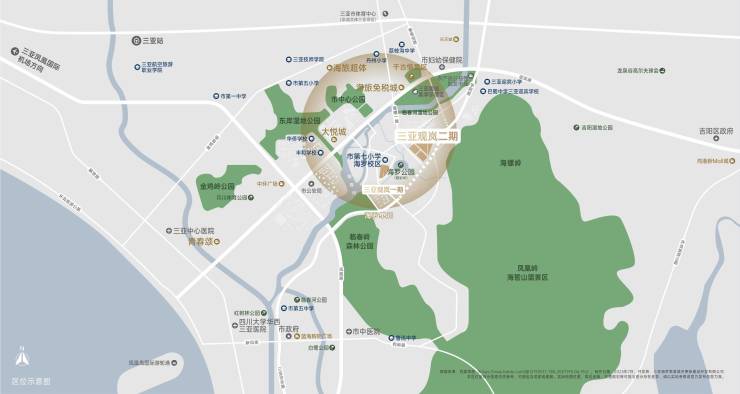 ◎3公里城市资源圈:大悦城、海免、海旅商圈、千古情、三亚市体育中心等。