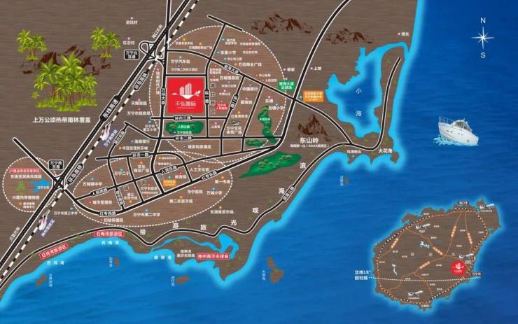 项目紧邻城市主干道,家门口就是公交站点,距G98环岛高速入口约500米,距万宁汽车总站约500米,距万宁高铁站约2.4公里,项目门口即公交站点,超10条公交线路。距琼海博鳌机场约42公里,坐拥美兰、博鳌、凤凰三大机场,一小时通达全岛生活圈。