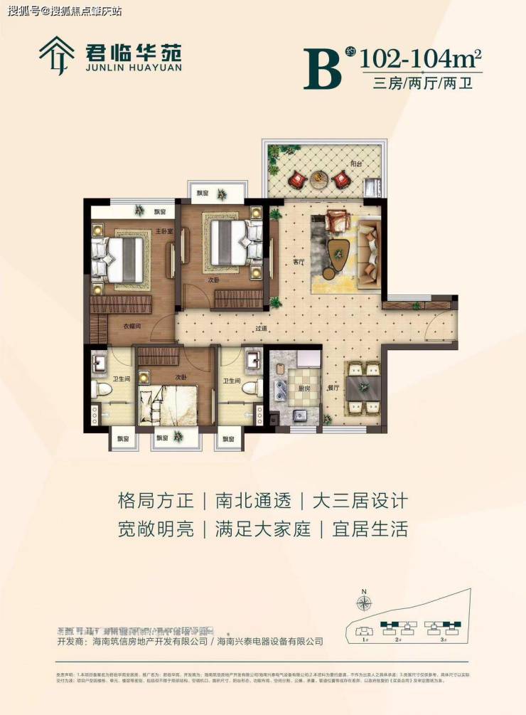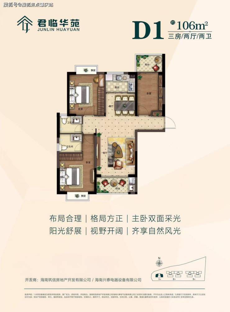 项目总建筑面积约 3.3 万平方米,容积率 2.2,建筑密度 18%,绿化率 35.05%,由 3 栋 13 层小高层组成,共 239 户,是海南筑信首个民生安居房项目。户型涵盖建面约 81㎡两房、99-105㎡三房及 120㎡四房,全装修交付。2024 年 12 月 31 日已交付,目前剩余少量房源持续配售中海口市住房和城乡建设局
