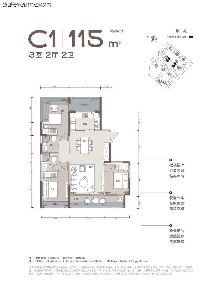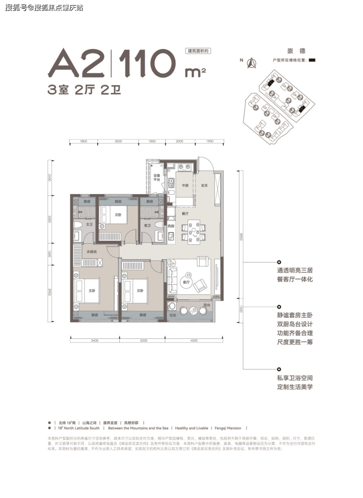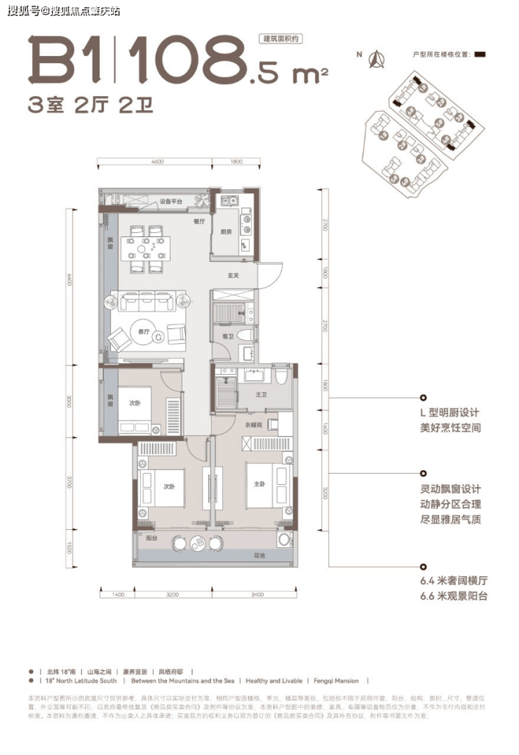 建面约108-142m三房/四房,慢享山海之间宜居康养度假生活,室内空间由HPID堂朝天意高端设计。