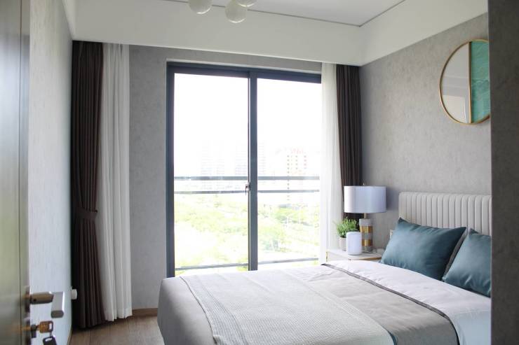 2.私密阳台与卧室连为一体,透过大落地窗,享受更多阳光与自然,观春华秋实,赏朝露暮霭。