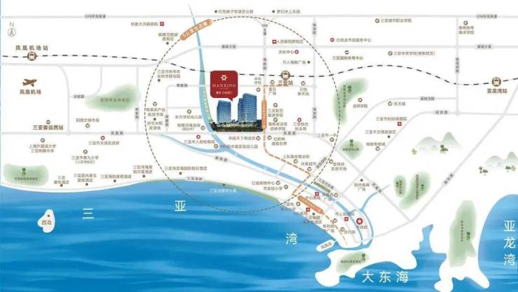 直线5km范围内,覆盖三亚市中心医院、三亚市人民医院新院、哈尔滨鸿森医院、三亚市妇幼保健院等多家医院,为健康保驾护航。