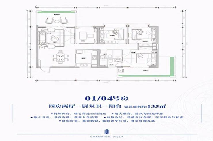 01-04号户型 4房2厅1厨2卫 135㎡
