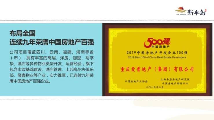 新半岛一期包含豪华、养生酒店及多业态商业群,二期404亩填海及600亩海域使用权。定位为中医药健康发展论坛,配套国际康养中心等。海域配套游艇码头、18洞海上高尔夫、低空飞行俱乐部、国际认证海上运动培训中心(游艇驾驶证、帆船驾驶证、潜水教练证)等,纳世界于一岛。