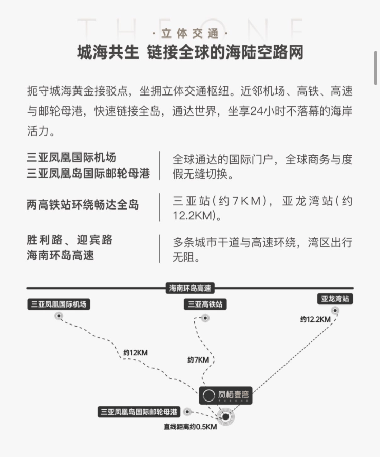 凤栖壹湾距河口隧道入口仅200米,便捷通往大东海片区鹿回头高尔夫,半山半岛帆船港等高端配套,双湾两岸,四通八达。