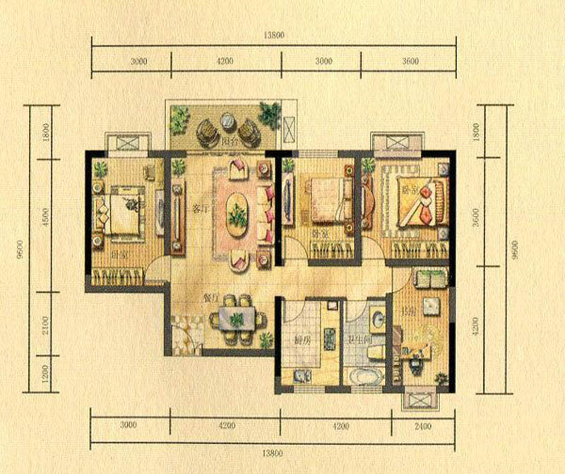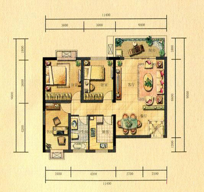 带景观阳台、观景飘窗,景观视野好,空气好。各个空间户型方正,方便室内家具布置;全明通透户型,居住时能够充分采光和透气,空气质量较好;采光较好,保证居住舒适度。整个户型空间布局合理。卧室进卫生间需要穿过餐厅或客厅;卧室门对着餐厅,有种不礼貌的感觉。厨房门朝向客厅,能加装门即可规避油烟对客厅的影响;