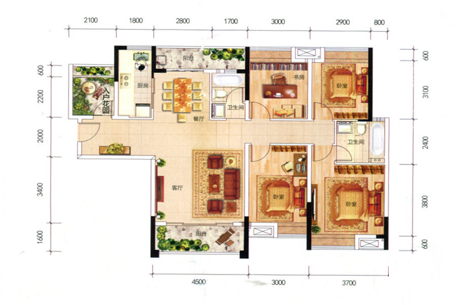 各个空间户型方正,方便室内家具布置;全明户型,各部分空间均有窗,可保证整体空间采光和通风,居住舒适度好;卫生间门朝向主要活动区域;卫生间空间不算开阔,基本满足使用功能;公摊高于15%且低于25%,符合住宅公摊正常范围。
