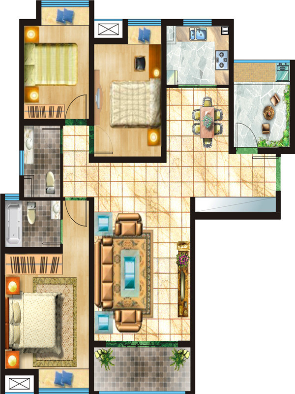 主卧或客厅不方正,不规则户型可通过后期装修得以改善;南北不通透的户型,后期居住时常开门通风换气即可;卧室门朝向客厅或餐厅;卫生间空间不算开阔,装修时要侧重实现其功能性;公摊高于15%且低于25%,符合住宅公摊正常范围。